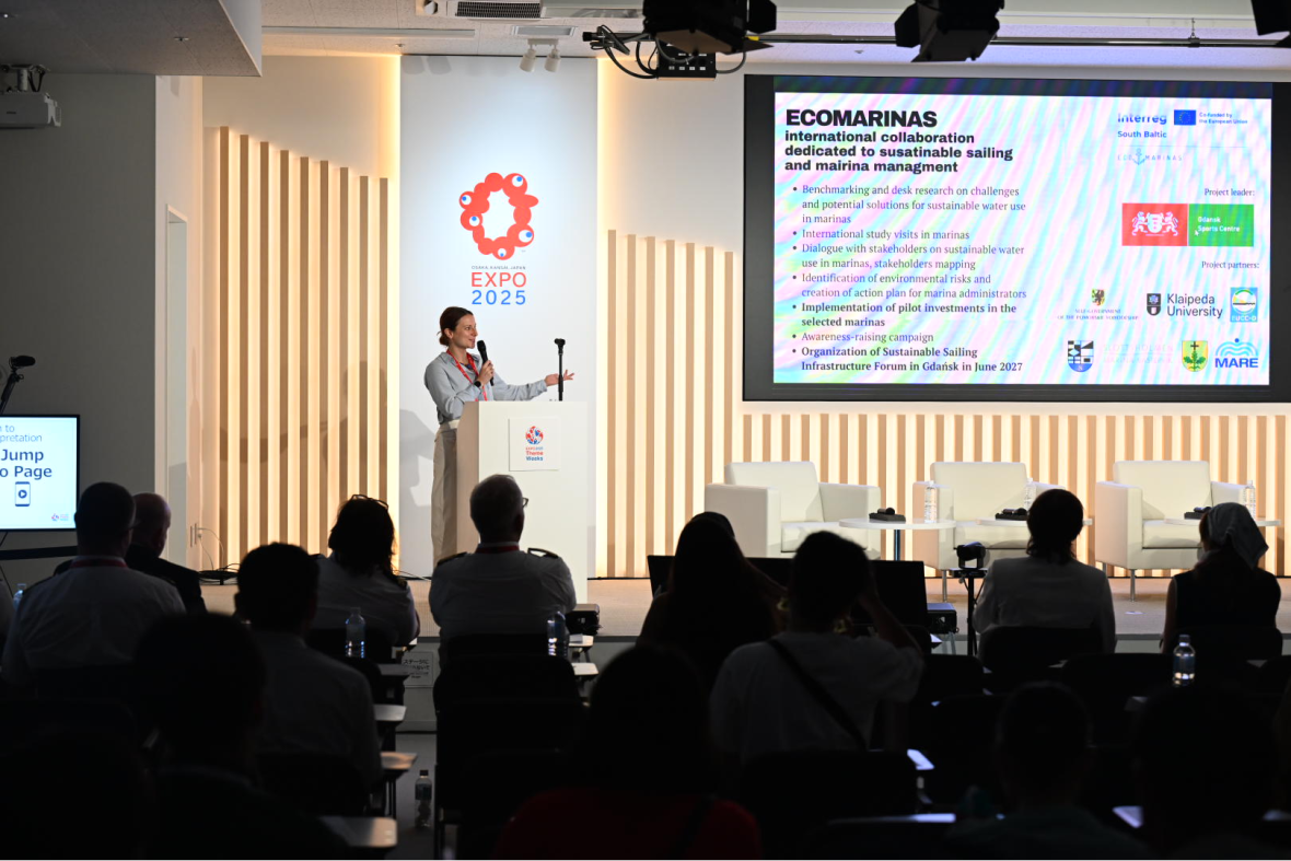 Wiemy, że Morze Bałtyckie jest wyjątkowe – i wyjątkowo wrażliwe. Żeglarstwo i infrastruktura w marinach mogą negatywnie wpływać na ekosystem, jeśli nie są zarządzane ekologicznie. Dlatego ECOMARINAS analizuje, edukuje i działa – zrzeszając wiele sektorów, od lokalnych władz i samorządów, przez operatorów marin, instytucje badawcze i organizacje pozarządowe, po współprace z żeglarzami i środowiskiem artystycznym. Projekt ten to przykład, jak lokalne inicjatywy mogą mieć globalny wpływ. Na EXPO pokazaliśmy, że międzynarodowa współpraca wokół środowiska wodnego jest możliwa – i konieczna.