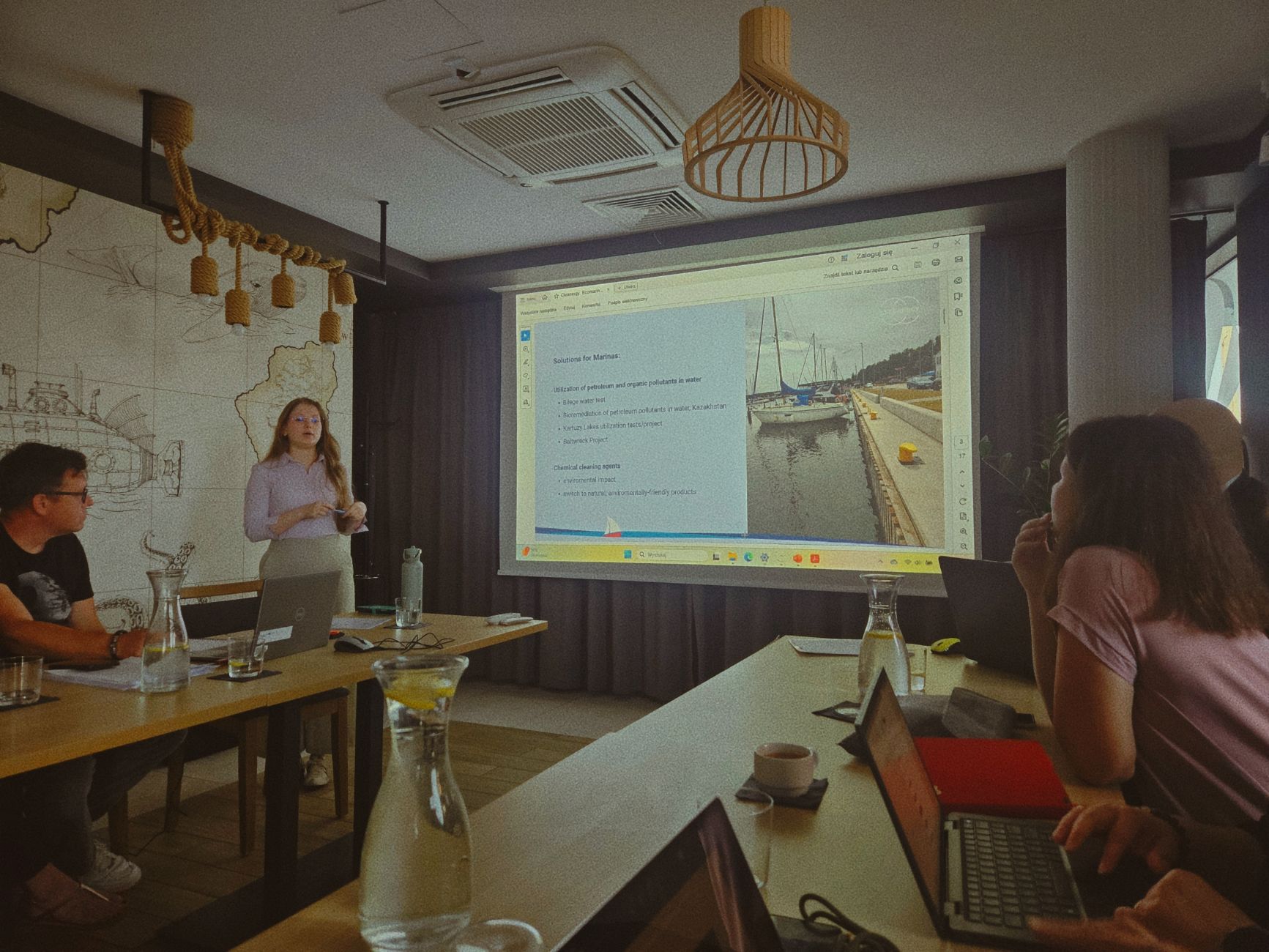 Pierwszy dzień wizyty studyjnej otworzyło wystąpienie przedstawicieli firmy Cleanergy o biologicznym rozkładzie zanieczyszczeń ropopochodnych i organicznych z wykorzystaniem bakterii oraz biosurfaktantów. Prezentacja kładła nacisk na użyteczność tych rozwiązań w realiach portów jachtowych m.in. poprzez dozowanie preparatów do akwenów i instalacji, ograniczanie chemicznych środków czystości, a także automaty oraz dyspensery do dozowania środków bioaktywnych na nabrzeżach (rozwiązania samoobsługowe, redukujące ryzyko rozlewu i nadmiernych dawek). Cleanergy przedstawiło także wyniki eksperymentu przeprowadzonego na Jeziorze Kartuskim — pilotaż pokazujący, że bioremediacja może obniżać ładunki węglowodorów i wskaźniki zanieczyszczeń w wodach stojących, przy założeniu odpowiedniego dozowania i kontroli efektu.